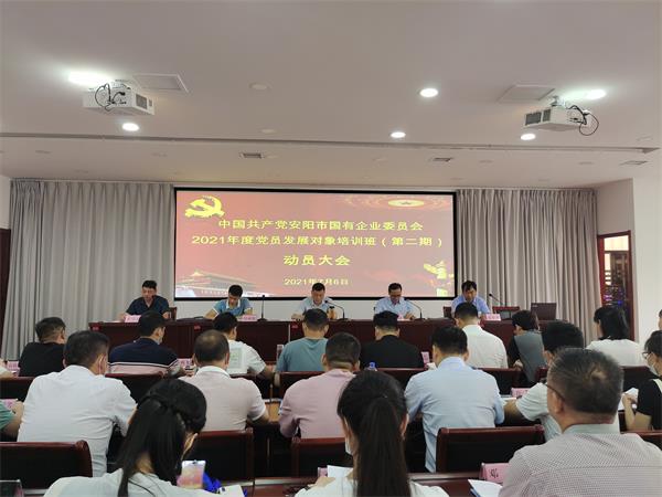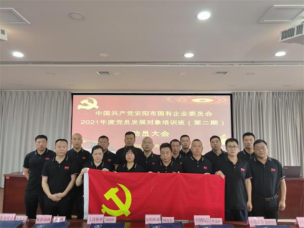 為加強對黨員發(fā)展對象的培養(yǎng)和教育,確保新發(fā)展黨員質(zhì)量,保持黨組織的先進性和純潔性,按照市國企黨委的統(tǒng)一部署,2021年7月6日至9日,公司黨委組織2021年度第一批黨員發(fā)展對象張皓翔、白雪、張娜、劉桂斌、李敬波、王猛、郭海波、李衛(wèi)軍、張揚、張義群、張小晶、張博、楊中朝、王建海、李艷軍、石磊16名同志,參加中共安陽市國有企業(yè)委員會2021年度黨員發(fā)展對象培訓(xùn)班(第二期)。7月5日下午3點,公司黨委副書記張錫軍主持召開專題會,會議要求此次參加培訓(xùn)人員端正入黨動機、嚴(yán)格遵守紀(jì)律、注重自身安全、樹立良好形象,不辜負組織的培養(yǎng)和希望。