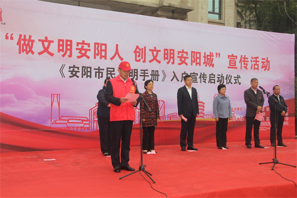 儀式上,公司志愿者李俊峰代表北關(guān)區(qū)志愿者進(jìn)行“爭(zhēng)做文明市民”宣誓,市衛(wèi)健委陳美紅代表文明單位表態(tài)發(fā)言,薛崇林、張玲、李志弘、車俊朝、路錄平、王洪忠為市、區(qū)各單位代表發(fā)放《安陽(yáng)市民文明手冊(cè)》。
