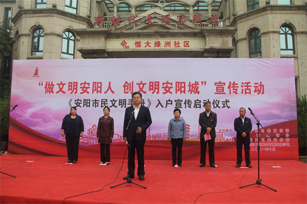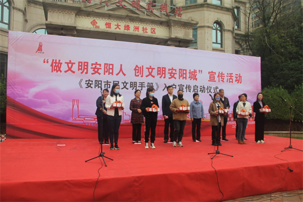 10月9日上午,由公司承辦的,安陽(yáng)“做文明安陽(yáng)人 創(chuàng)文明安陽(yáng)城”宣傳活動(dòng)暨《安陽(yáng)市民文明手冊(cè)》入戶宣傳啟動(dòng)儀式,在恒大綠洲新時(shí)代文明實(shí)踐站舉行。市委常委、宣傳部部長(zhǎng)、副市長(zhǎng)薛崇林,市人大常委會(huì)副主任張玲,市政協(xié)副主席李志弘,市委宣傳部副部長(zhǎng)、市文明辦主任車俊朝,北關(guān)區(qū)委副書記、區(qū)長(zhǎng)路錄平,北關(guān)區(qū)委常委、宣傳部長(zhǎng)、副區(qū)長(zhǎng)王洪忠,各級(jí)文明單位代表、社區(qū)代表、北關(guān)區(qū)志愿者代表,群眾代表參加儀式,儀式由車俊朝主持。公司黨委委員、副總經(jīng)理魏東帶領(lǐng)28名志愿者參加此次活動(dòng)。