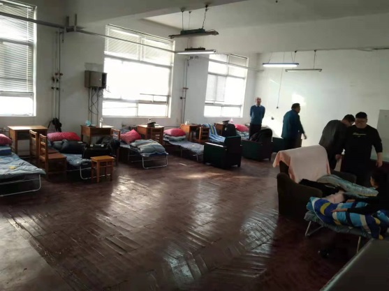 “我們的隊伍從集合到現(xiàn)在實際已經(jīng)一個多月了,前期負責其他工作。隨著咱安陽出現(xiàn)疫情后,我們負責卡點和隔離人群工作,吃住在隔離點,目前包括我在內(nèi)很多隊員十余天都沒回過家了?!比朔酪淮箨犂顫凉f:“你看我們的隊員王軍清,忙完工作還要一人帶個孩子,真是很不容易。梁榮是位女同志,每天都是早7點到崗晚7點回家,一個一歲多的孩子讓年邁的父母帶著,她從來都沒講過一句怨言。由于目前抗疫物資緊張,我們的隊員們到現(xiàn)在都還是在很簡陋的環(huán)境中工作。”