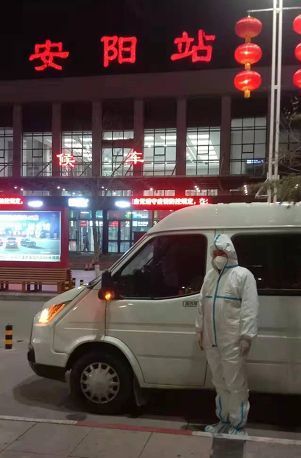 按照上級工作安排,要求學(xué)校安排車輛,用于接送醫(yī)護人員到社區(qū)、村委隔離點進(jìn)行核酸檢測,從火車站接中高風(fēng)險區(qū)返安人員到集中隔離點隔離,接送解除隔離的群眾回家。任務(wù)不僅風(fēng)險大,而且非常繁重。他向上級保證堅決完成任務(wù)。為確保任務(wù)完成安全、有序,他安排楊福財、許慶軍一同完成。自1月10日以來,他們不分晝夜已先后出車20余次。21日,一場大雪降臨安陽,濕滑的路面給他們的工作帶來極大難度,車輛在路面上打著滑,時不時向路邊滑去,為完成任務(wù),周衛(wèi)國、楊福財保持高度警惕,楊福財手握方向盤,小心翼翼準(zhǔn)時將車開到火車站、隔離區(qū),把中高風(fēng)險區(qū)返安人員送到集中隔離點隔離,又將解除隔離的群眾接送到家中。