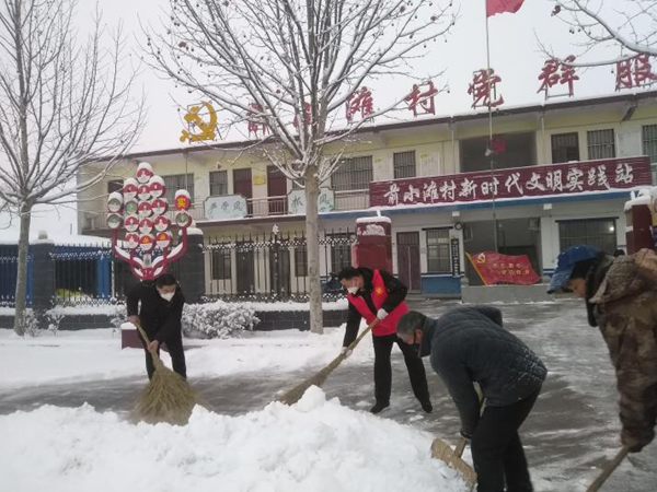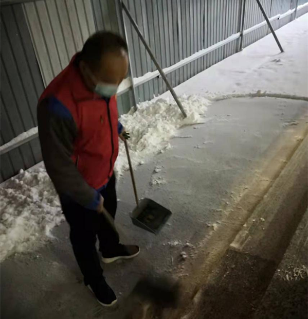 湯陰疫情嚴(yán)重,共產(chǎn)黨員常連群、積極分子許慶軍在20日晚11點接到公司支援湯陰抗疫通知后,二話不說,拎起行囊,加入到支援湯陰疫情防控隊伍中去,他們和公司張海林,劉慶剛兩位同志下沉到湯陰縣伏道鄉(xiāng)前小灘村幫助抗疫,攜助村委會干部組織核酸檢測,維持村民做到足不出戶,街門鎖閉,住家隔離。22日,一場大雪,席卷大地,他們一大早掃起雪來開始一天的工作,表示疫情不退,絕不收兵。