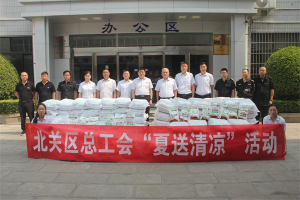夏日炎炎,驕陽似火。隨著夏季高溫天氣的來臨,為切實做好高溫防暑工作,保障一線保安隊員的身體健康,7月1日上午,北關區(qū)總工會將慰問一線職工的綠豆、小米等防暑降溫物資送到公司大院。公司領導張錫軍、魏東、孫國濤、李樞林出席活動。