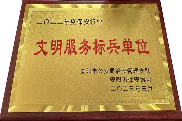 5月30日下午,安陽市保安協(xié)會召開2022年度總結(jié)表彰大會,公司被評為“安陽市保安行業(yè)文明服務(wù)標(biāo)兵單位”,其中公司守押一大隊(duì)、華潤燃?xì)庥邢薰颈0矋彽?個(gè)崗點(diǎn)被安陽市保安協(xié)會評為“文明示范崗”,公司楊國慶、李志勇等17名同志被安陽市保安協(xié)會評為“優(yōu)秀保安員”,公司張運(yùn)洲同志榮獲安陽市保安協(xié)會“喜迎黨的二十大 保安護(hù)航新征程”征文比賽一等獎(jiǎng)。