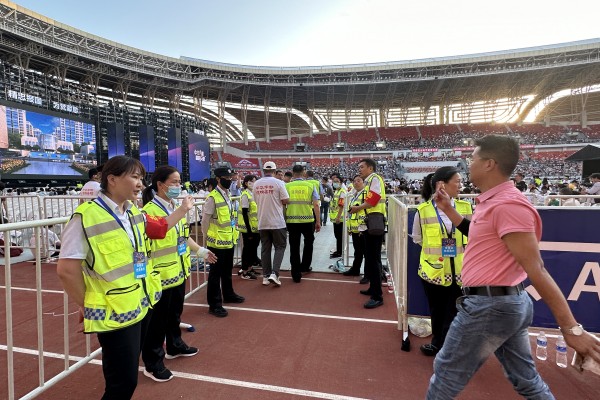 全體執(zhí)勤人員克服活動時間長、天氣炎熱等困難,提前4小時到崗到位,自始至終服從命令、聽從指揮,堅守崗位,認(rèn)真履責(zé), 既維護(hù)現(xiàn)場秩序,又服務(wù)群眾。在酷暑之下,全體安保人員頭頂烈日的“拷問”,腳踏熱浪的“侵襲”,堅守在體育場內(nèi)的每個執(zhí)勤點。