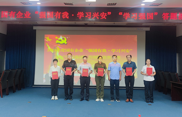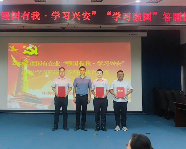 2023年8月4日,市國企黨委舉辦2023年度國有企業(yè)“強國有我·學(xué)習(xí)興安”“學(xué)習(xí)強國”答題挑戰(zhàn)賽預(yù)賽,來自全市17家國有企業(yè)共50人參加比賽,公司黨委副書記、監(jiān)事長張錫軍帶隊,由9名選手組隊代表公司參賽。經(jīng)過激烈角逐,公司以平均成績第一名榮獲優(yōu)秀組織獎,安大鵬榮獲個人一等獎,趙高飛、馮文峰、喬力榮獲個人二等獎,肖冬、聶紹軍榮獲個人三等獎。