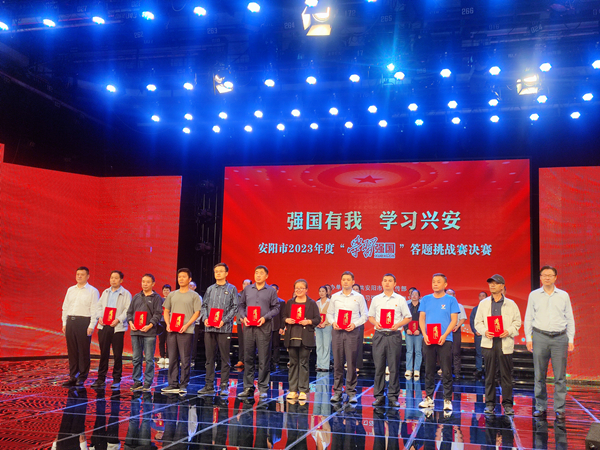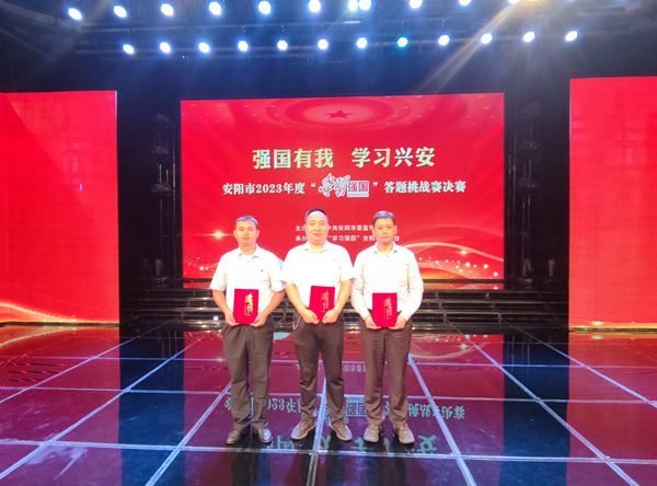 9月26日上午,由中共安陽市委宣傳部、“學習強國”安陽學習平臺聯(lián)辦的“強國有我?學習興安”安陽市2023年度“學習強國”答題挑戰(zhàn)賽決賽在安陽市融媒體中心隆重舉行,公司選派六名選手代表市國企黨委參賽。經(jīng)過激烈的“知識對決”,公司安大鵬、趙高飛榮獲二等獎,馮文峰榮獲三等獎,市國企黨委榮獲優(yōu)秀組織單位。