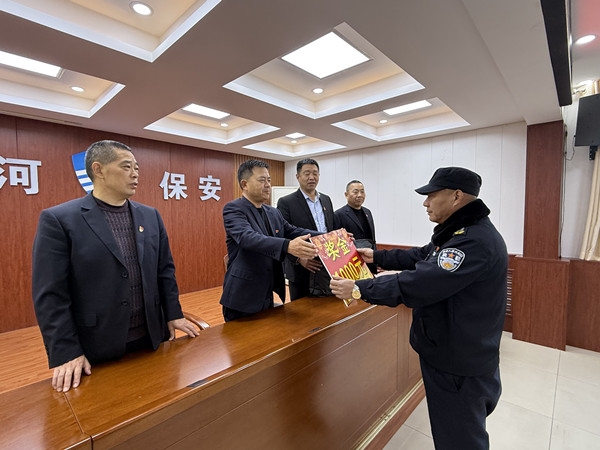 為表彰先進(jìn)、樹立典型,進(jìn)一步激勵廣大保安員勇于擔(dān)當(dāng)、積極作為,12月5日下午3:00,人防分公司在五樓會議室召開中隊長以上人員大會,對劉克平同志進(jìn)行表彰。公司黨委委員、副總經(jīng)理孫國濤出席會議,并為劉克平同志頒發(fā)獎金1000元和執(zhí)勤服1套。