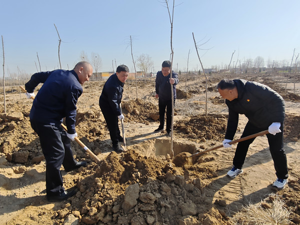 春風(fēng)拂面催新綠,黨旗飄揚(yáng)踐初心。為全面貫徹落實(shí)黨的二十屆三中全會(huì)精神,踐行習(xí)近平生態(tài)文明思想,牢固樹立“綠水青山就是金山銀山”理念,3月18日上午,公司黨委領(lǐng)導(dǎo)班子帶領(lǐng)50余名黨員干部開展“植樹添新綠、黨旗映初心”主題黨日活動(dòng)。