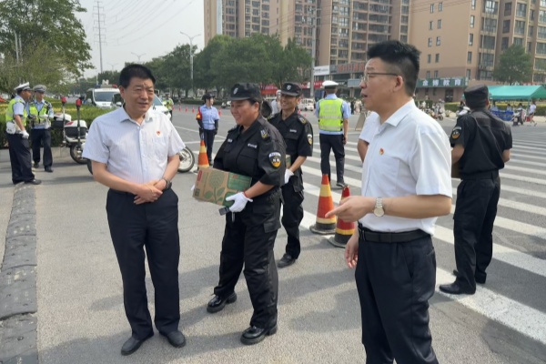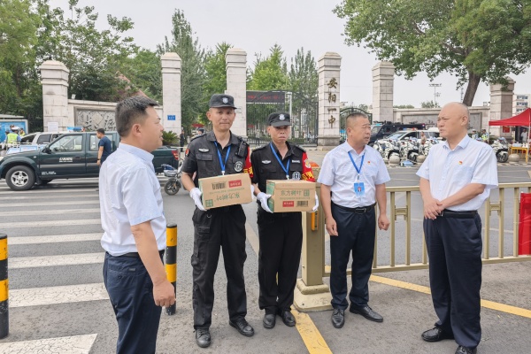 為切實做好高考期間安全保障工作,確??忌鷵碛邪踩⒂行虻目荚嚟h(huán)境,6月7日上午,公司領(lǐng)導(dǎo)班子深入市區(qū)各高考考點,實地檢查督導(dǎo)高考安保工作,并親切慰問堅守一線的執(zhí)勤保安員,為他們送去防暑降溫物資和公司的關(guān)懷問候。