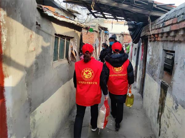 2月1日,公司黨委委員、副總經(jīng)理魏東,帶領(lǐng)公司志愿者提著大米、面粉、食用油、春聯(lián)等慰問品,走進盤庚中社區(qū)造紙廠家屬院,看望慰問獨居老人,在寒冬為他們送去溫暖、關(guān)懷和新春祝福。