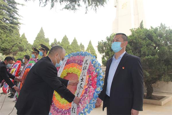 重溫革命戰(zhàn)爭年代的烽火記憶,感受理想信念的強(qiáng)大力量,探尋新時代下烈士精神帶給我們的深刻啟示。 天地英雄氣,千秋尚凜然。高高矗立在陵園里的“革命烈士永垂不朽”紀(jì)念碑莊嚴(yán)而肅穆。黨委委員魏東懷著無比崇敬的心情移步拾階而上,向革命烈士敬獻(xiàn)花籃,仔細(xì)整理花籃緞帶。干部職工向革命烈士紀(jì)念碑鞠躬致敬,肅立默哀,聆聽祭文,深切緬懷,寄托哀思,以革命先烈的崇高精神為鏡,接受了一次深刻的宗旨教育和理想信念教育。