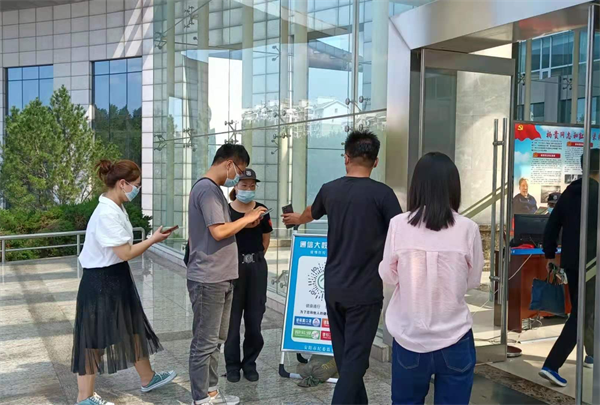 2021年7月中下旬,新冠病毒卷土重來,短短幾日,波及到三十多個省市。為有效預防、積極應(yīng)對新冠肺炎疫情,特保大隊派駐市紀委監(jiān)察委(公路局)崗特保中隊結(jié)合客戶單位,及時設(shè)立相關(guān)政策告知、防護知識宣傳,設(shè)置掃碼區(qū)、測溫區(qū)、登記區(qū)等,并幫助訪客進行驗證,對辦公人員尤其外訪人員嚴格把控,認真測溫做好登記并出示健康碼,行程卡。