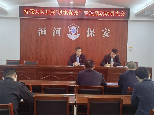為認真學習貫徹公司“以案促改”活動方案精神,3月14日下午,特保大隊在公司南二樓會議室召開班長以上骨干動員會。大隊長李樞林對專項活動大隊方案進行部署,總經理助理趙潤平參加動員會并提出具體要求。