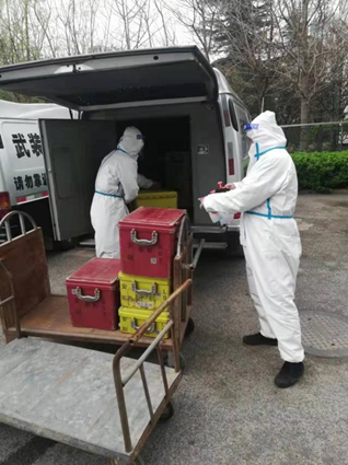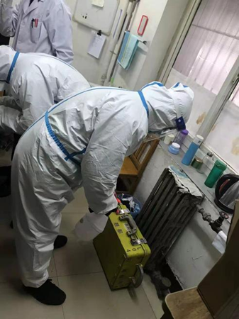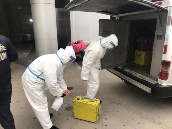 演練中,大隊模擬接到中國銀行通知,需要到人民醫(yī)院接收錢款勤務(wù)。大隊出勤人員首先進行消毒穿戴防護服,完成消毒程序后車輛出車,到達人民醫(yī)院和銀行工作人員嚴(yán)格按照消毒程序?qū)钕溥M行交接,隨后將款箱押至規(guī)定地點,車輛回隊后再按照程序進行消毒交接。