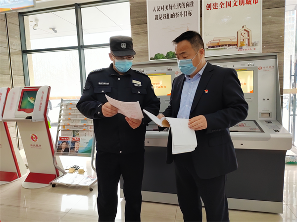 3月30日上午,人防分公司政委馮文峰在一大隊(duì)黨支部書記聶紹軍陪同下到文峰區(qū)巡防隊(duì)、銀杏南校、商頌小學(xué)、鄭州銀行等崗點(diǎn)檢查指導(dǎo)“以案促改”工作。