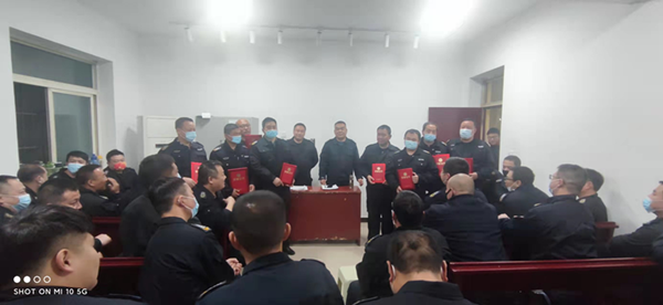 2022年3月31日,公司對(duì)2021年度先進(jìn)個(gè)人和集體進(jìn)行了表彰。當(dāng)日下午守押一大隊(duì)舉辦了大隊(duì)2021年優(yōu)秀隊(duì)員表彰大會(huì),表彰先進(jìn)鼓干勁。