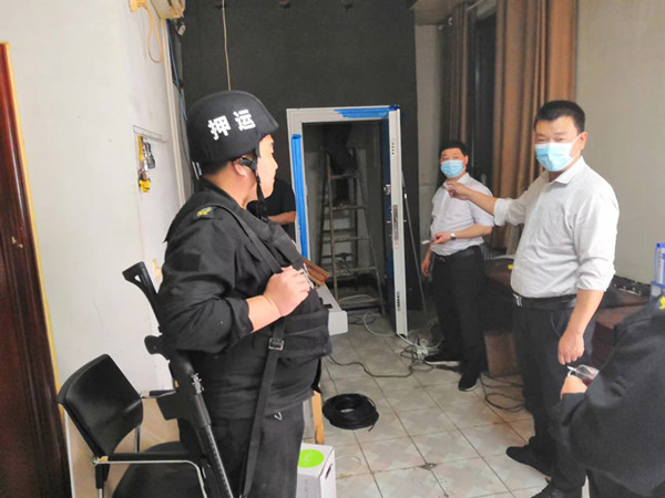 在改造過程中,大隊(duì)長楊中朝多次召開守庫工作例會,要求林州農(nóng)商銀行金庫隊(duì)員做好金庫施工中的安全工作。在施工中,大隊(duì)安排專人專門負(fù)責(zé)協(xié)調(diào)在金庫改造期間出現(xiàn)的施工問題,守庫員全副武裝做好金庫的安全警戒工作。