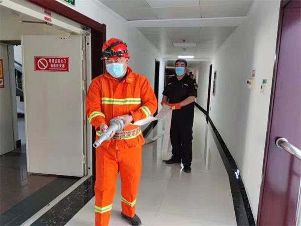 在演練現(xiàn)場,隨著客戶單位保衛(wèi)科領(lǐng)導(dǎo)一聲令下,消防主機響起了刺耳的火警報警,演練隊員賀永豪立即提著滅火器材,帶領(lǐng)當班隊員迅速跑到起火樓層,并用對講機通知消防室人員按滅火預(yù)案進行滅火,用應(yīng)急廣播通知客戶單位職工按順序逃離現(xiàn)場,撤到安全地帶。隨后隊員們又進行了消防知識培訓(xùn),確保了消防安全演練效果。