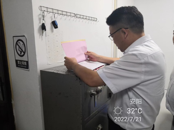 分公司領(lǐng)導(dǎo)張新平、韋洪東分別深入到七大隊(duì)的臨淇、建行、農(nóng)商行等中隊(duì)進(jìn)行了工作檢查,在檢查中,他們統(tǒng)一檢查了各中隊(duì)的日常臺(tái)賬、車(chē)輛、守庫(kù)室等,詳細(xì)查看了隊(duì)員的學(xué)習(xí)記錄,查看了今年公司“以案促改、鄭州7.20災(zāi)害追責(zé)和能力作風(fēng)建設(shè)年”等方案的開(kāi)展和轉(zhuǎn)段學(xué)習(xí)情況,檢查了防疫情況登記。在守庫(kù)室,不但查看了守庫(kù)室的各項(xiàng)設(shè)備及衛(wèi)生情況,還查看了押運(yùn)登記本和槍支領(lǐng)取交接本的登記情況。張新平指出,對(duì)比上一次的例行檢查,整體工作有了很大的改觀,好的方面要保持下去,對(duì)于檢查出的短板,要盡快的整改,確保守押各項(xiàng)工作安全運(yùn)行。