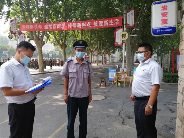 在第十一中學(xué)、安林中學(xué)、安陽市體育運(yùn)動(dòng)學(xué)校檢查中,重點(diǎn)對(duì)保安疫情防控工作流程、個(gè)人防護(hù)以及學(xué)校有關(guān)疫情期間的要求,進(jìn)行了詳細(xì)的詢問。對(duì)檢查中發(fā)現(xiàn)的問題,立即整改。進(jìn)一步規(guī)范執(zhí)勤著裝,要求高峰期間持安保器械立崗,熟悉疫情防控應(yīng)急處置預(yù)案,嚴(yán)格落實(shí)好疫情防控的各項(xiàng)措施。