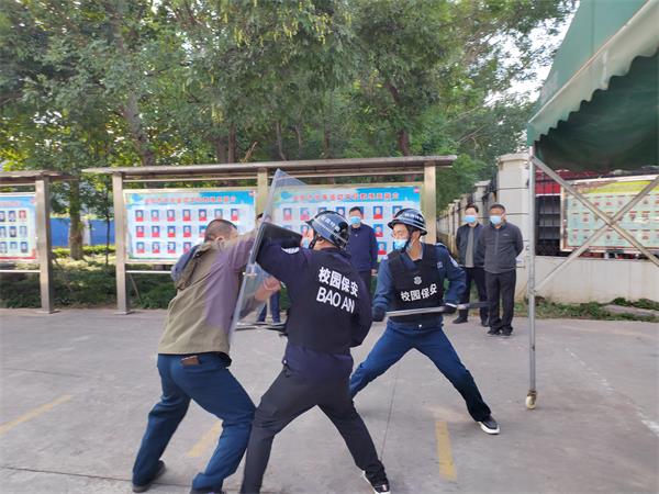 最后,袁學(xué)軍副校長(zhǎng)對(duì)本次反恐防暴演練提出了表?yè)P(yáng)和肯定,他講到:本次演練很成功,場(chǎng)景很貼近生活,一切都是從實(shí)戰(zhàn)出發(fā),反映出了洹河保安的實(shí)力和專業(yè)性;整個(gè)演練過程緊湊,嚴(yán)肅而逼真,隊(duì)員配合默契,反映出了保安隊(duì)員過硬的軍事素質(zhì)和嫻熟的處突能力;感謝人防五大隊(duì)對(duì)學(xué)校安保工作的大力支持和各參演人員的辛苦付出,學(xué)校連年取得的區(qū)“平安校園”榮譽(yù),離不開你們默默無聞的付出。同時(shí),勉勵(lì)全體隊(duì)員繼續(xù)努力,堅(jiān)守崗位,與學(xué)校廣大師生一起迎接二十大勝利召開,確保校園安全穩(wěn)定。