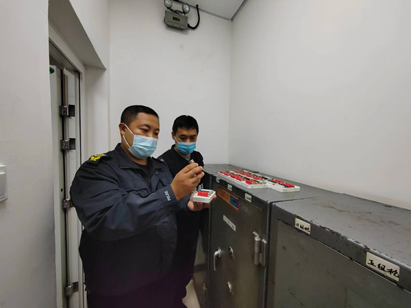 會后,大隊(duì)領(lǐng)導(dǎo)對槍支、彈藥保管柜進(jìn)行全面檢查。