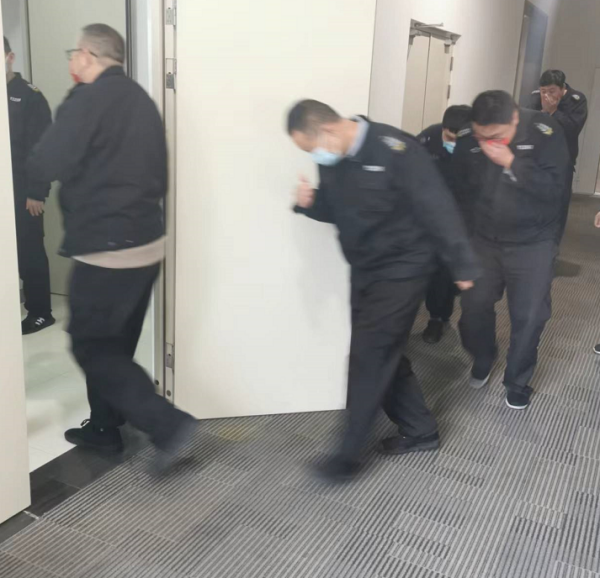 隨著一聲“開始”,大家“掩鼻、貓腰、溜墻根”有秩序的迅速走出房間,通過最近的安全通道逃生,到達(dá)安全區(qū)域。