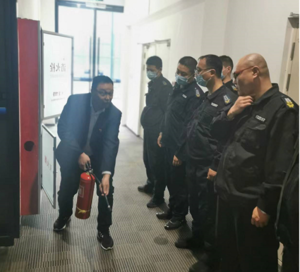 演練結(jié)束后,副隊(duì)長(zhǎng)趙良余講解了干粉滅火器的使用要領(lǐng)并進(jìn)行現(xiàn)場(chǎng)演示,使隊(duì)員進(jìn)一步掌握干粉滅火器的使用方法,以便在發(fā)生火災(zāi)時(shí)進(jìn)行滅火救人。