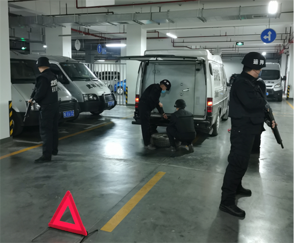 演練現(xiàn)場,一輛運鈔車在執(zhí)行押運勤務(wù)途中突發(fā)故障,車組人員沉著冷靜、反應(yīng)迅速、措施得當,整個過程按照應(yīng)急預(yù)案有序進行,達到預(yù)期效果。