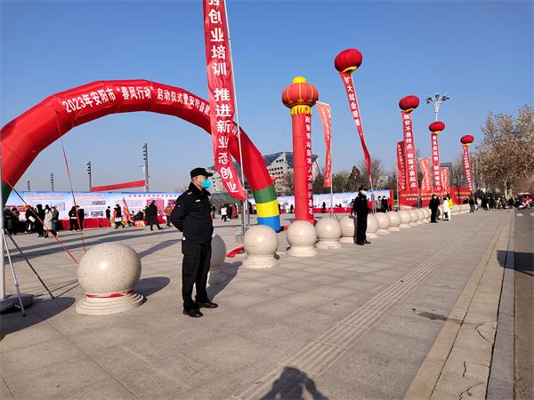 1月9日,2023年安陽市“春風(fēng)行動(dòng)”啟動(dòng)儀式暨安陽縣就業(yè)援助招聘會在東區(qū)禮湖公園拉開帷幕,人防五大隊(duì)承擔(dān)了本次安保任務(wù)。