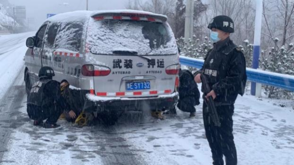 早上點(diǎn)名前,大隊(duì)長(zhǎng)楊中朝就通過(guò)大隊(duì)微信工作群向各行中隊(duì)傳達(dá)了指示。一是要根據(jù)路況,精準(zhǔn)研判,行車中減速慢行,不超車,車上備足兩套防滑鏈,對(duì)于上下坡路段積雪嚴(yán)重的要及時(shí)進(jìn)行安裝防滑鏈,確認(rèn)安全后再行駛。二是針對(duì)銀行網(wǎng)點(diǎn)的路況要及時(shí)和銀行網(wǎng)點(diǎn)進(jìn)行溝通,車輛行駛不到的要及時(shí)進(jìn)行上報(bào),通過(guò)與銀行網(wǎng)點(diǎn)聯(lián)系,做到延遲送達(dá)或者暫不運(yùn)送,謹(jǐn)記安全第一。三是要根據(jù)上午運(yùn)送的線路路況,對(duì)下午的出車接款時(shí)間做出調(diào)整,通過(guò)與銀行網(wǎng)點(diǎn)的溝通聯(lián)系,適時(shí)提前下午出車的接款時(shí)間,力爭(zhēng)在晚上溫度下降前安全返回。