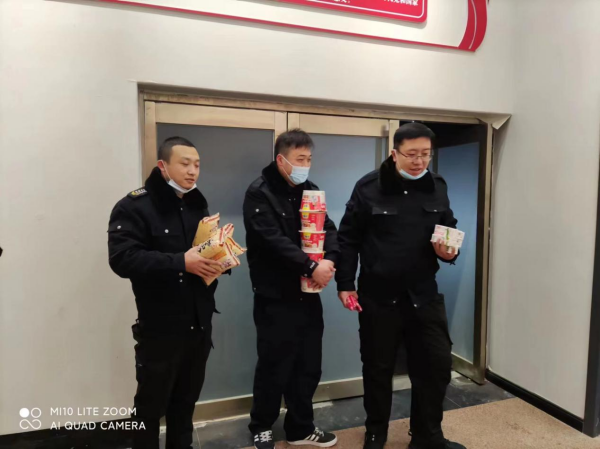 為了給堅守在工作崗位上隊員提供后勤保障,大隊長楊海波精心安排,給隊員們準備了豐富的午餐(方便面、牛奶、面包、香腸、雞蛋、蘋果),讓大家吃好飯,安心工作。
