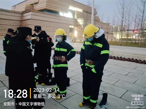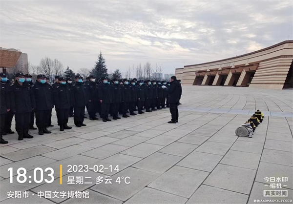 冬春交替,為有力遏制和預(yù)防火災(zāi)的發(fā)生,為進(jìn)一步加強(qiáng)隊(duì)員們的安全防火意識(shí),提升其在處理突發(fā)事件過程中的協(xié)調(diào)配合 能力,2月14日下午,特保大隊(duì)駐中國文字博物館中隊(duì)組織全體隊(duì)員開展了消防滅火演練。