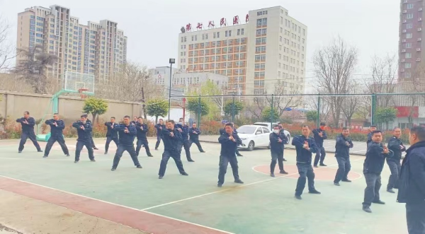 為進一步提高全體隊員的徒手防衛(wèi)能力,增強隊員的技能水平。3月25日中午,守押五大隊全體收車后在建行后操場組織擒敵拳訓練。