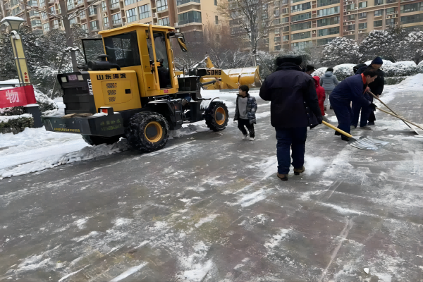除雪行動中,鼎誠物業(yè)合理調(diào)配人員、機械,采取人機相結(jié)合的方式,分工明確,分片負責,劃區(qū)作戰(zhàn),先清后鏟,隨降隨清,隨清隨運。大家齊心協(xié)力,團結(jié)協(xié)作,對各項目小區(qū)主干道、停車場道路出口、臺階等部位進行清掃。