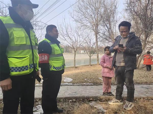 廟會(huì)執(zhí)勤期間,下午3時(shí)許,五中隊(duì)駐煙廠保安班長(zhǎng)孫海杰和王偉發(fā)現(xiàn)一小男孩走丟找不到父母,立即詢問(wèn)孩子父母電話,和其父母取得聯(lián)系以后,安全把孩子交到父親手里。