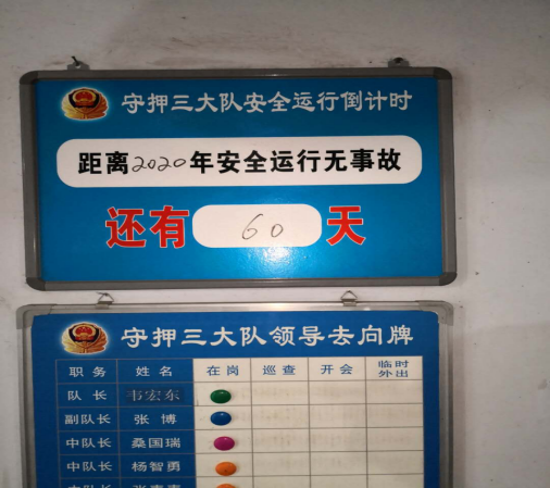 11月2日早7點20分,守押三大隊全員隊列整齊,在進(jìn)行例行晨會。晨會上,大隊指著隊部門口懸掛的大隊安全運行倒計時警示牌指出,離全年過去還有不到60天,全體隊員要保持良好工作作風(fēng),繼續(xù)嚴(yán)守各項規(guī)章制度和守押安全操作指南,繼續(xù)嚴(yán)格遵守防疫措施,為安全順利完成全年大隊工作目標(biāo)繼續(xù)努力。