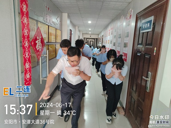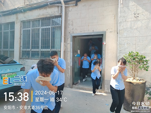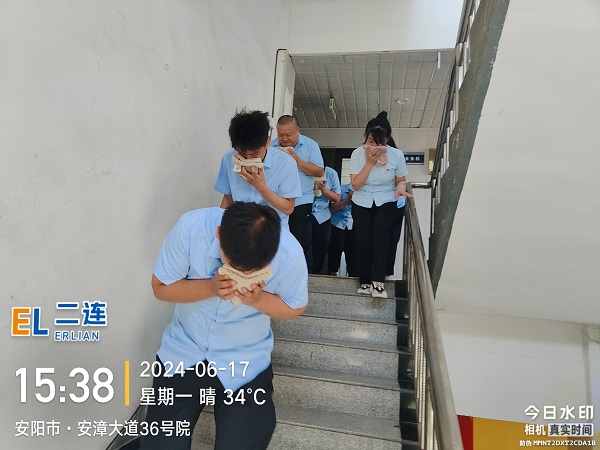 消防逃生演練模擬了公司大樓內(nèi)某處發(fā)生火災(zāi)的場景,全體人員在李衛(wèi)軍的指揮下,用濕毛巾捂住口鼻,彎腰沿著樓梯兩側(cè)的疏散路線快速、有序地向樓下撤離至安全地帶。整個(gè)演練過程緊張有序,達(dá)到了預(yù)期的效果。