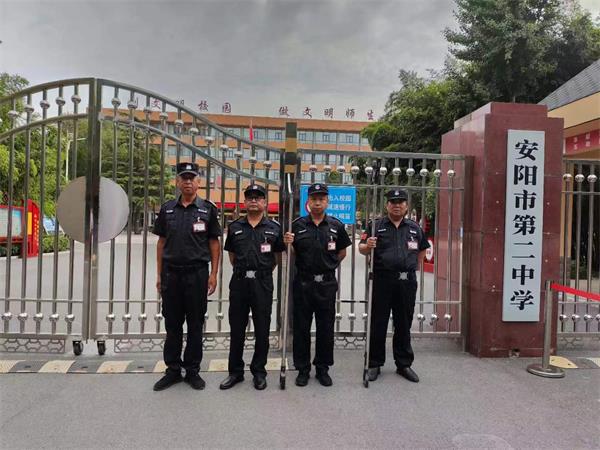 考試期間,全體執(zhí)勤隊員牢固樹立全心全意為考生服務(wù)的思想,時時處處把安全意識、安全責任放在首位,為考生營造安全、和諧的考試環(huán)境。早上6點半,護考保安隊員準時到崗在位,嚴格按照公司“定人、定崗、定時、定責”要求,警容嚴整,嚴陣以待,配合校方在學校門口設(shè)置警戒區(qū)域,避免無關(guān)人員靠近,做好校門口交通保障、門衛(wèi)守護、入場指導、警戒維護等……他們各司其職、認真負責。執(zhí)勤中,涌現(xiàn)了許多好人好事,如:駐四中考點、一中考點護送輪椅上行走不便學生的保安隊員陳文斌、王鳳銀,駐三十二中考點撿到汽車鑰匙和家中鑰匙的隊員牛新玉等。盡管汗水打濕了衣服,但他們依然頂著酷暑堅守在各自的崗位上,為莘莘學子保駕護航,良好的精神風貌贏得了考生和家長的一致好評。