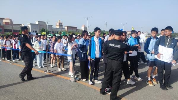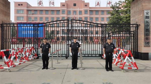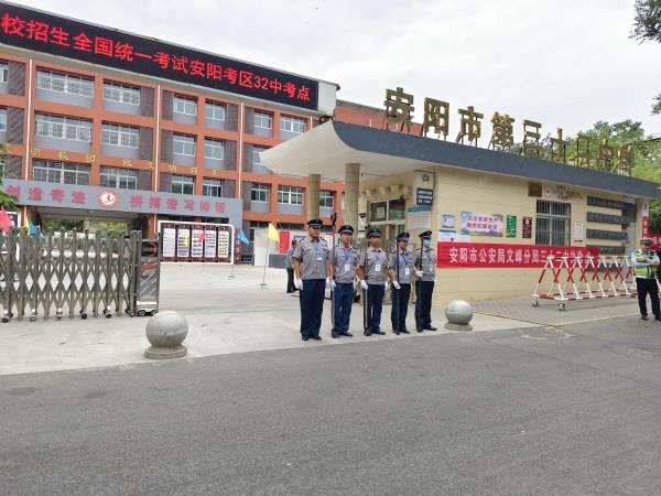 場內(nèi)考生奮筆疾書,場外保安堅守崗位,兩份不同的答卷,同樣需要認真負責、盡心盡力,考生一舉中魁不負青春年華,保安隊員在大“烤”中用安保行動書寫平安答卷。