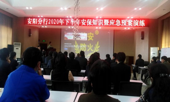 為了更好的提高特保隊員防范風險能力,確??蛻舭踩?,11月12日下午,特保大隊派駐建行門崗的特保隊員參加了建行安陽分行組織的“建行安陽分行安全宣傳月暨消防演練”,并聯(lián)合開展了消防預(yù)案演練活動。