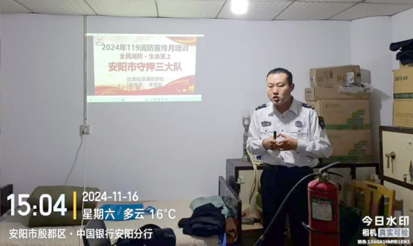 為貫徹落實(shí)公司關(guān)于進(jìn)行消防應(yīng)急培訓(xùn)的工作要求,進(jìn)一步增強(qiáng)廣大隊(duì)員的消防安全意識(shí),提高隊(duì)員應(yīng)對(duì)火災(zāi)事故的處置能力,11月16日,守押三大隊(duì)邀請(qǐng)社安學(xué)校李教官對(duì)全體隊(duì)員開(kāi)展消防安全知識(shí)學(xué)習(xí)培訓(xùn)。