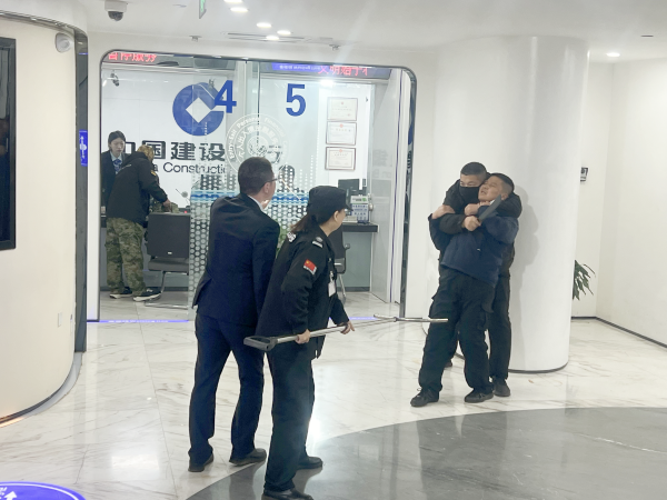 本次演練模擬了銀行員工在日常業(yè)務(wù)辦理過(guò)程中遇到歹徒搶劫的情景??蛻魝冋谟行蜣k理業(yè)務(wù),突然一名偽裝成普通客戶的“劫匪”手持兇器闖入大廳,企圖實(shí)施搶劫。面對(duì)這一突如其來(lái)的緊急情況,大堂經(jīng)理第一時(shí)間按下報(bào)警按鈕,并迅速通知安保部門(mén)報(bào)告情況。同時(shí),保持冷靜爭(zhēng)取時(shí)間等待警察到來(lái)。與此同時(shí),其他員工也迅速行動(dòng)起來(lái),有的則隱蔽地點(diǎn)記錄“劫匪”的動(dòng)向,以便為后續(xù)提供好的線索。網(wǎng)點(diǎn)安保人員與“警方”保持緊密溝通,協(xié)助警方制定救援計(jì)劃。在警方的精心部署下,最終成功將“劫匪”制服并帶離現(xiàn)場(chǎng)。