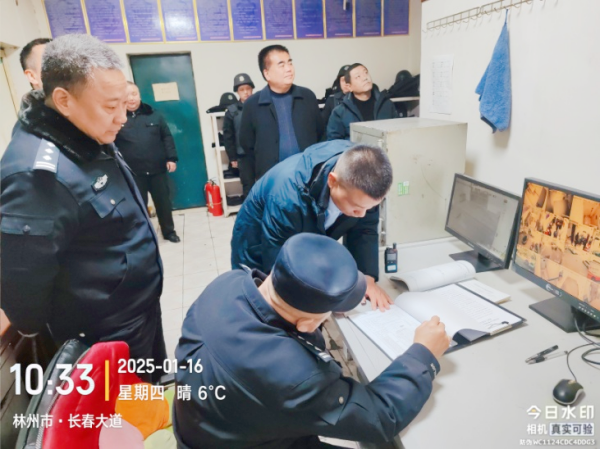 1月16日上午,安陽市公安局治安支隊(duì)民警郭慶林一行在守押分公司副經(jīng)理韋洪東陪同下,到守押七大隊(duì)檢查工作,大隊(duì)長楊中朝全程陪同。