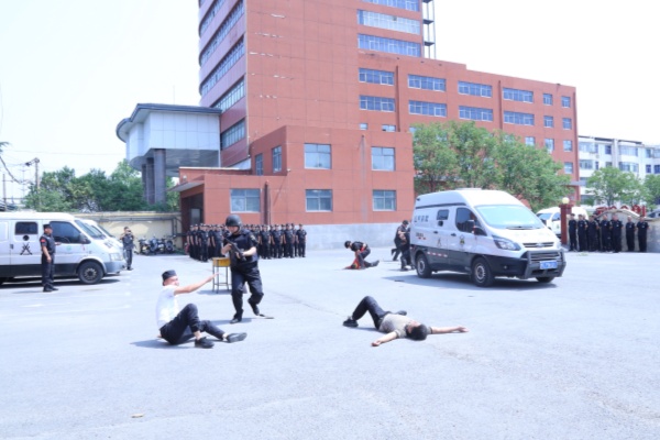 此次練兵考核項目主要包括隊列、交通指揮、文明禮儀崗、理論測試、守押防搶劫預(yù)案與輪胎更換、人防校園防暴預(yù)案及銀行應(yīng)急預(yù)案、消防知識問答與實際操作等科目??己诉^程中,人防分公司全體隊員精神飽滿、隊列整齊、紀律嚴明;特保大隊參訓(xùn)率較高、科目完整、士氣振奮;守押分公司各大隊基礎(chǔ)科目扎實沉穩(wěn)、精湛成熟、指揮標(biāo)準(zhǔn)、動作規(guī)范,尤其是創(chuàng)新科目刺殺操動作剛勁、氣勢雄渾,讓人耳目一新。
