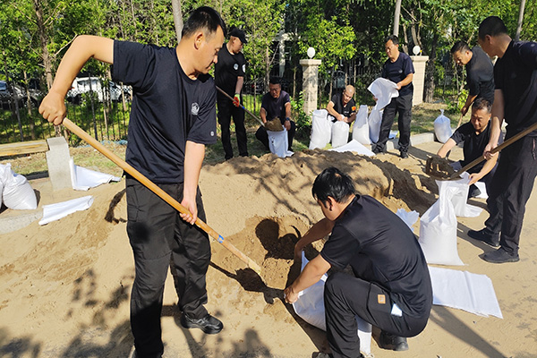 在班長李治國的帶領(lǐng)下,隊員們迅速進入工作狀態(tài),現(xiàn)場分工清晰明確。大家各司其職,有的專注于裝填沙袋,有的仔細為沙袋扎口,還有的負責搬運沙袋,整個防汛物資準備工作忙碌而有序。盡管是休息時間,但隊員們始終保持著高度的責任心,以實際行動踐行防汛使命。