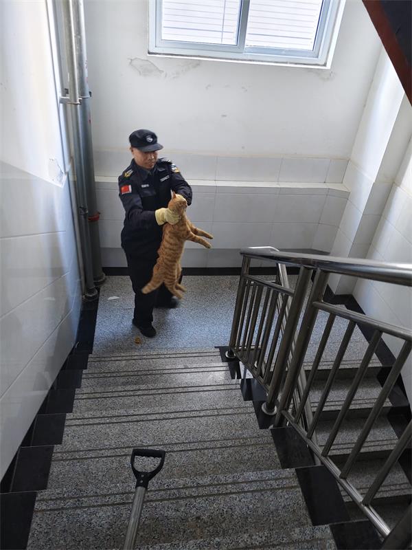 當日,趙付山同志按規(guī)范開展校園巡邏時,發(fā)現(xiàn)一只流浪貓突然闖入學生宿舍區(qū)域,可能威脅學生人身安全。他迅速反應、沉著處置,立即啟動應急流程,一邊安撫現(xiàn)場學生情緒,一邊采取安全穩(wěn)妥方式對流浪貓進行驅(qū)離,最終想盡一切辦法才捉住了身形矯健的流浪貓并交給了有關部門處置。之后趙付山又對宿舍區(qū)域進行了全面安全檢查,確保無后續(xù)風險。其專業(yè)高效的處置能力和心系師生的責任意識,得到學校及師生的充分肯定,學校專門發(fā)布通報對其予以表揚。