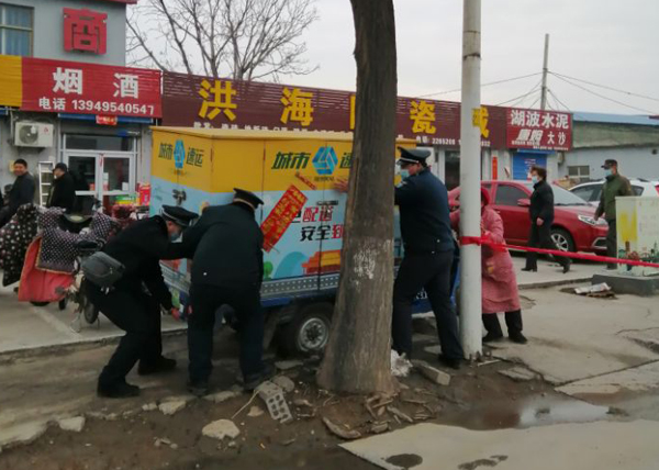 下午5時20分許,一小型貨車途徑東風(fēng)路與韓陵路交叉口。因快車道交通管制,在通過人行道時,由于剛下過雨雪,地面松軟,車輪陷了進去。在此執(zhí)勤的二大隊楊承濤、郭海軍、石麗飛和張海慶等隊員趕忙上前幫忙推車。但由于貨物太重,越陷越深,他們幫車主把貨物卸下一部分,把車推上去,又把貨物給他裝上車。保安員的善行義舉,受到車主和群眾的好評。