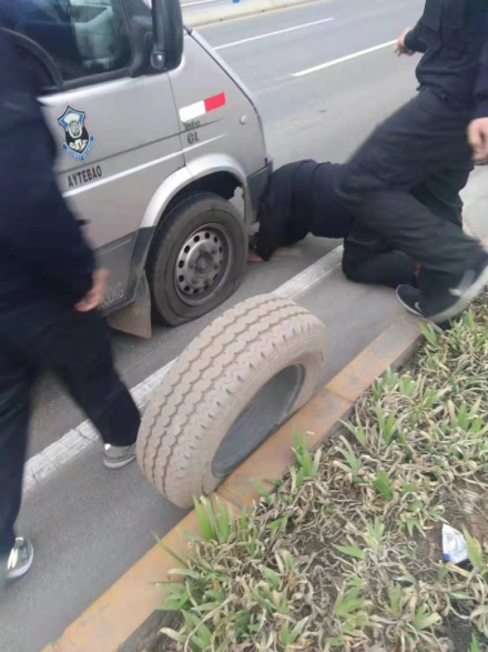 3月10日下午,守押七大隊聯(lián)社中隊橫水線路押運(yùn)車輛豫EEA030行駛途中輪胎受損,導(dǎo)致車輛行駛異常。車長苗榮斌感覺異樣,立即叫停,安排司機(jī)原艷兵下車檢查,發(fā)現(xiàn)車輛右前輪胎發(fā)生漏氣,馬上就要癟掉。得知車況后,苗榮斌立即大隊領(lǐng)導(dǎo)上報情況。大隊指示,在安全的情況下更換車輛備胎,并同時上報了公司監(jiān)控中心。